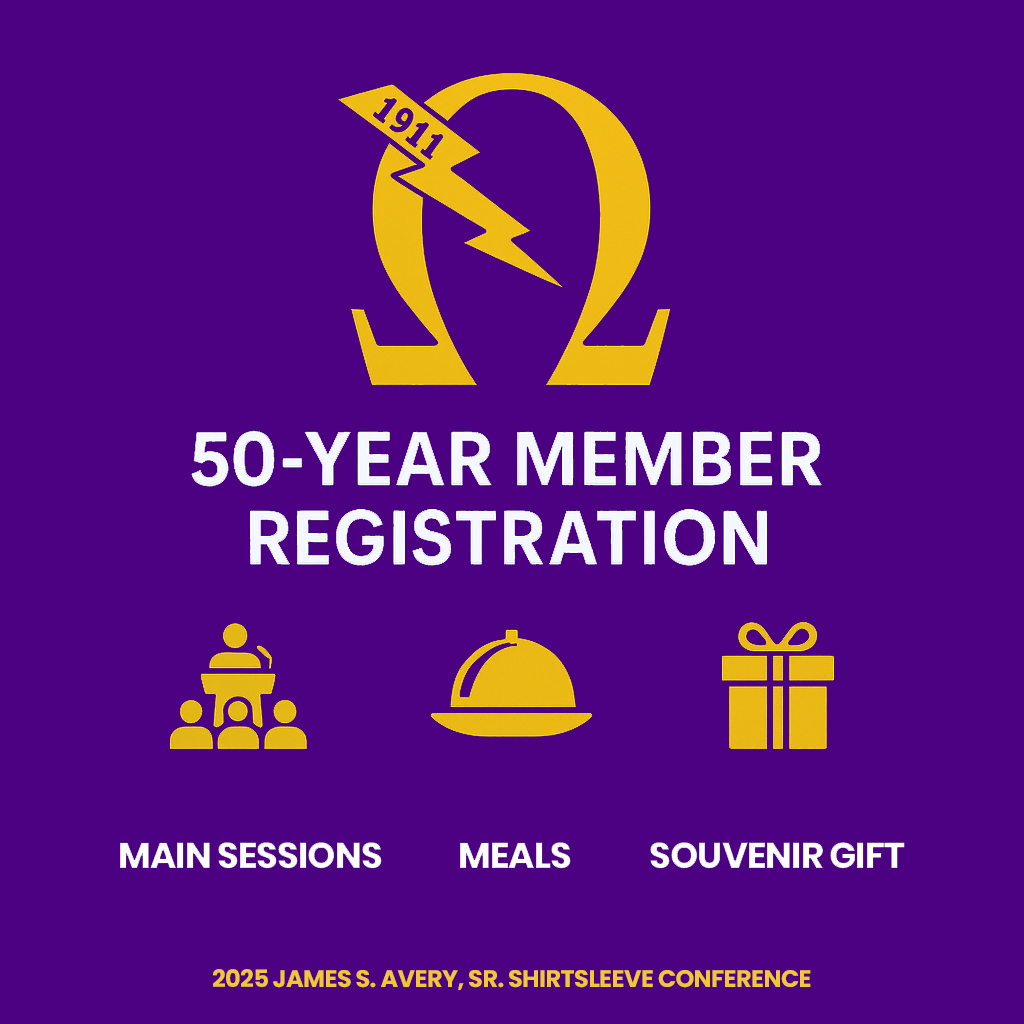 This ticket grants 50 year members FREE and full access to all general sessions, workshops, and keynote events. Registration includes a continental breakfast, lunch and a complimentary souvenir gift. Social events are not included and must be purchased separately.